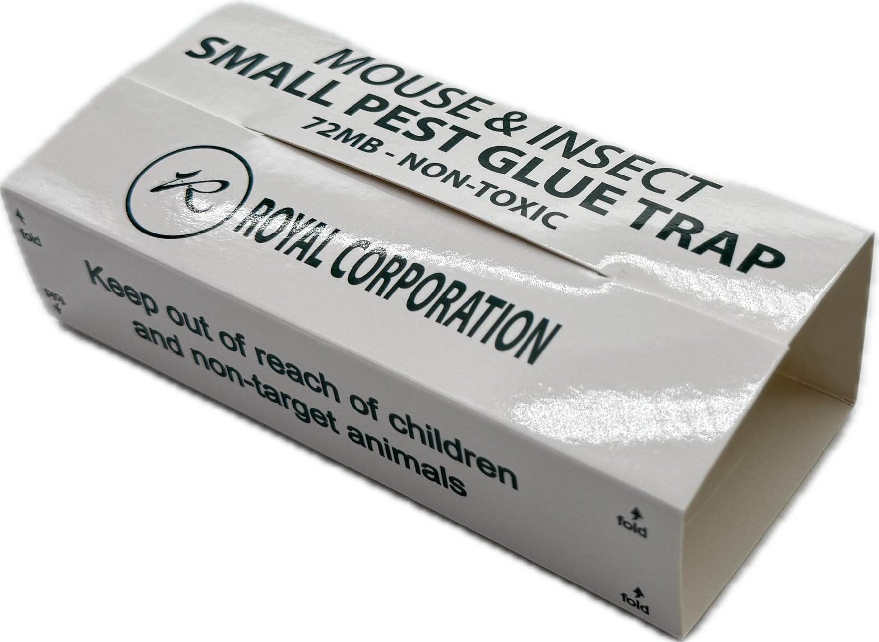 The Royal Small Pest Glue Traps are an effective solution for catching smaller pests like mice and insects. Each case contains 200 disposable paper traps. Shipped flat, these traps are simple to fold and set up, making them convenient and ready for immediate use. Traps are shipped flat and easily folded and ready for use.