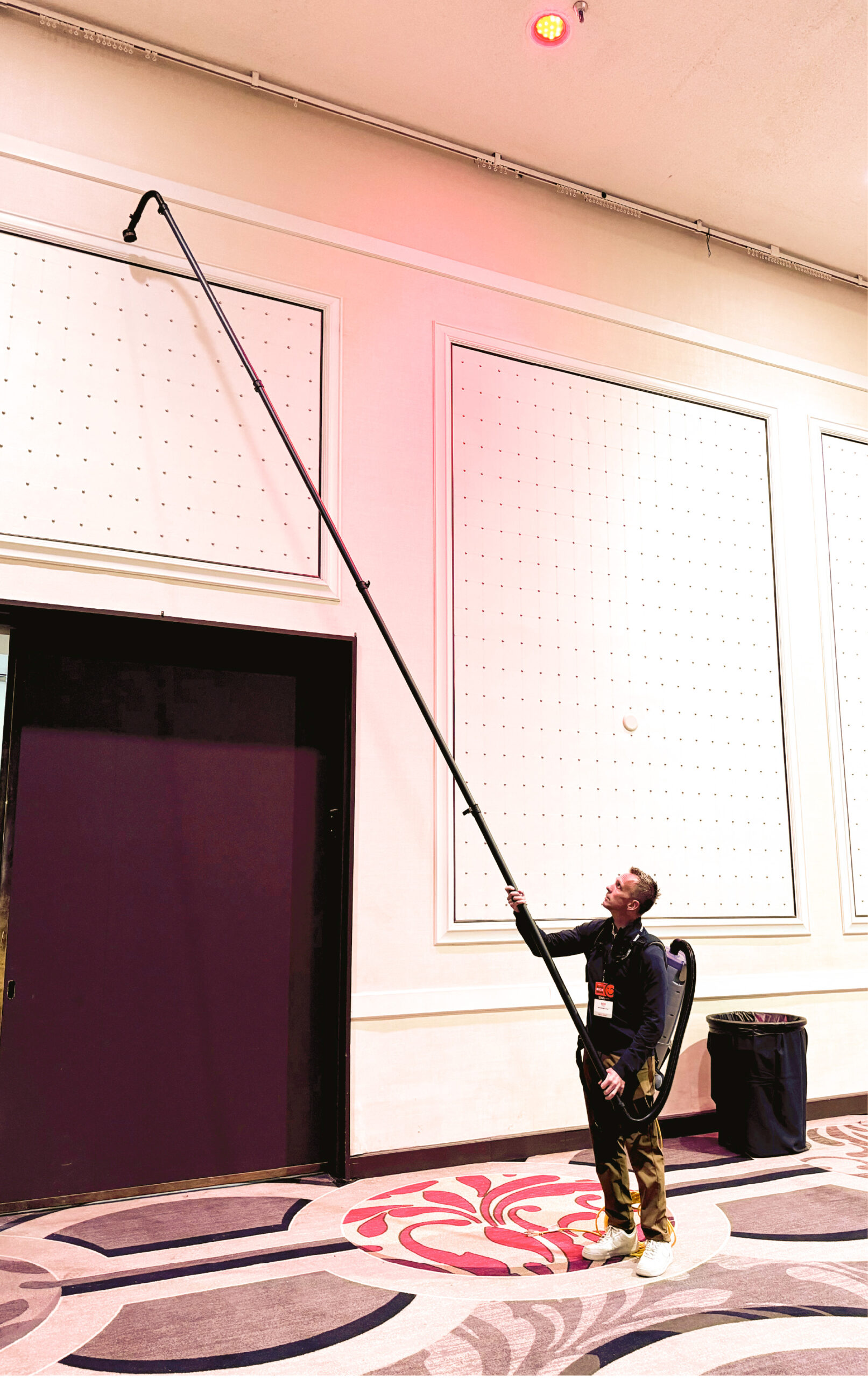 The rigidity of the carbon fiber poles maintains suction to allow vacuuming the high reach areas. In addition to vacuum attachments, we are testing attachments for light bulb changing, window washing, dry dusting, phone/camera attachments, and more.